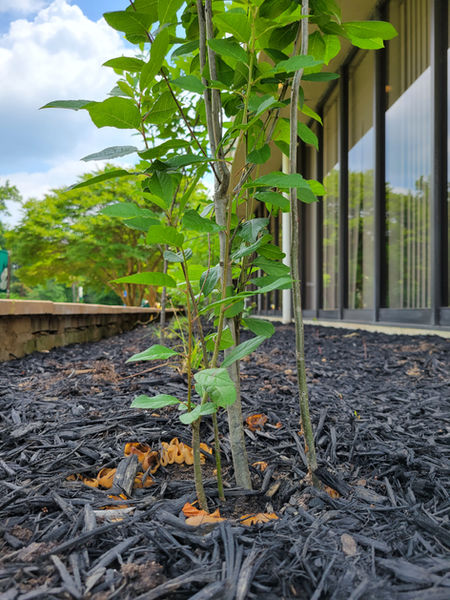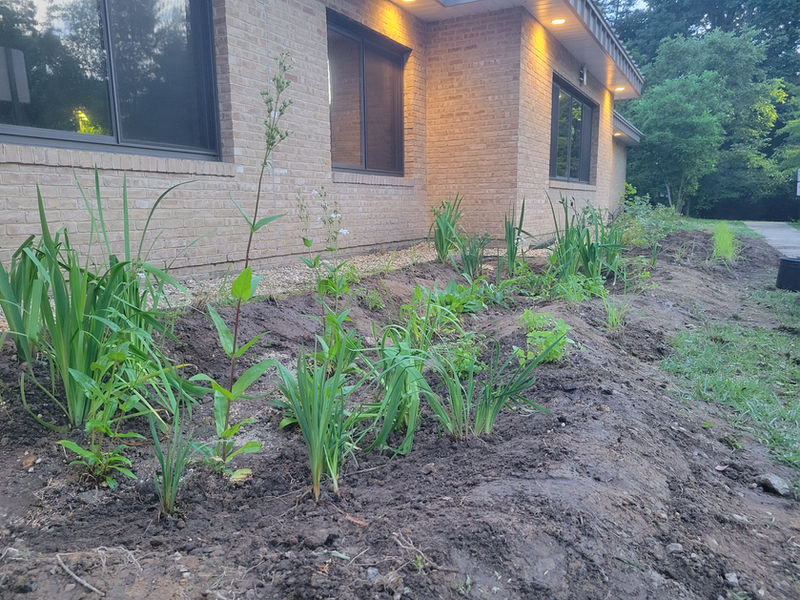 Because of success of our other projects, the Town of Cheverly asked CNPP to help with the planting around four key points of the town center and police station. In March 2022, we replaced all the invasive nandina in the raised beds surrounding the community center with native winterberries, ninebark, and wild geranium. We then added hearty native bee balm, brown-eyed Susans, and sundrops around the Kerley Anderson Park sign at the entrance to the complex. In front of the low wall, we planted an array of low-growing natives that will bloom from early spring to fall. In front of the police station, we added a rain garden and a formal hedgerow of fragrant sumacs.